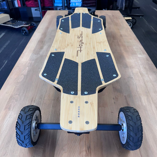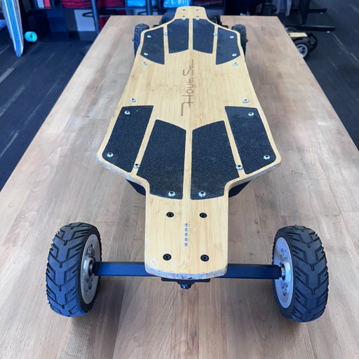 This board was used as a demo! Rating : 8/10 (Shop Demo) Speed: 35+ MPH (can be geared to 40+ MPH) Range: // 12S8P: 50+ Miles Grade: As much...